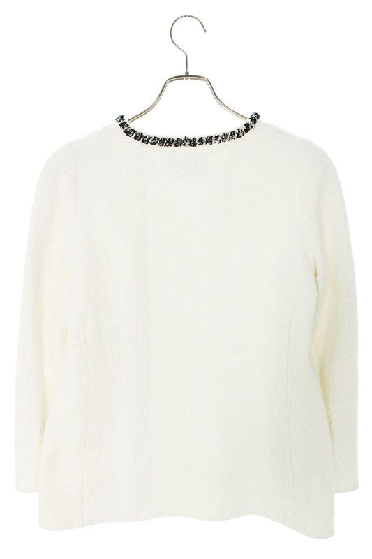 Chanel P72407v64049 Camellia Button No Collar Tweed Jacket Ladies 42