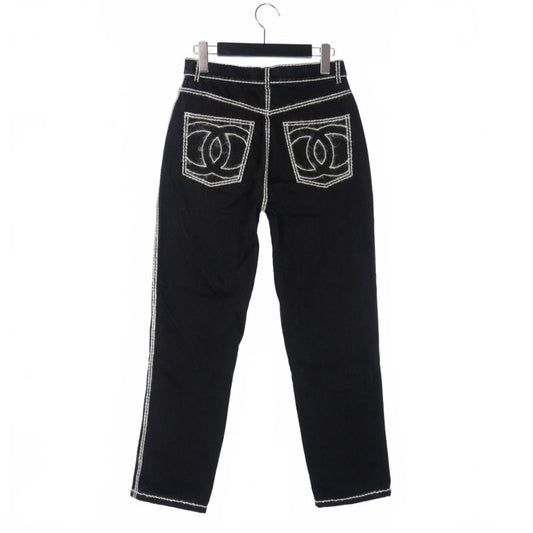 Chanel 24AW Coconage White Stitch Denim Straight 34 Black P77384 V70084