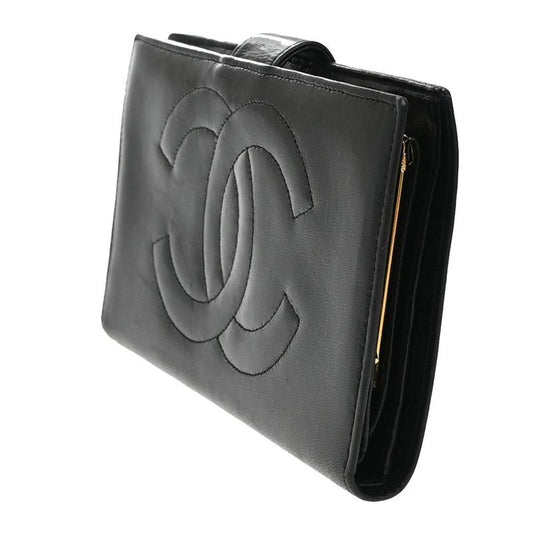 Chanel Long Wallet CC Black Leather Bifold Wallet 77ka922
