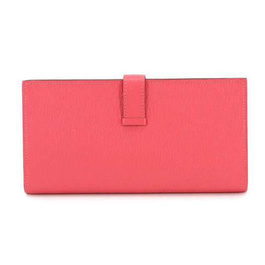 Exhibited Hermes Bearn Souffle Fold Long Wallet Chevre Rose Azalea Engraved A