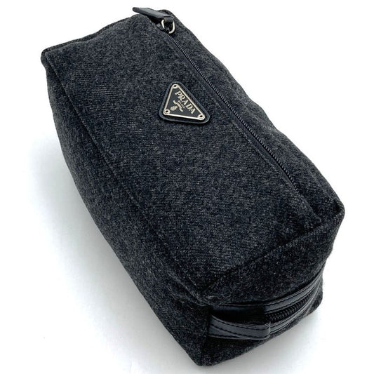 Prada Pouch Clutch Bag Small Bag Gray Wool Triangle Logo Fashion Women Men