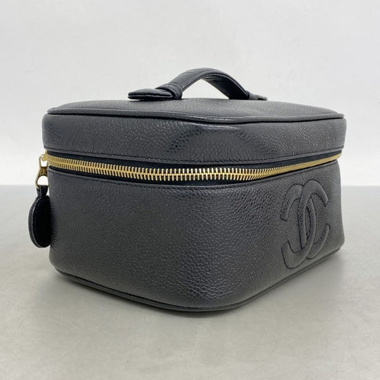 Chanel Vanity Bag Caviar Skin Black Gold Hardware Women's