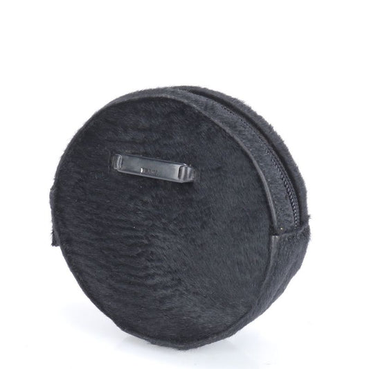 Prada Halaco Leather Cosmetic Pouch Round Small Accessory Black Women's RRE