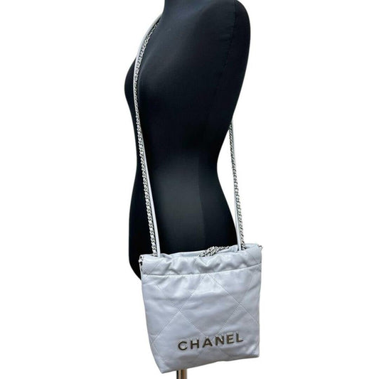 Chanel 22 Mini Chain Hobo Shiny Calfskin Quilted Light Grey