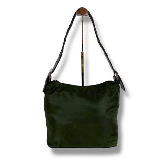 Prada One Shoulder Bag Triangle Logo Khaki Green Tessuto Nylon Leather Hobo Bag