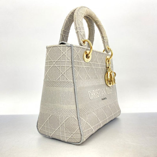 Christian Dior Handbag Lady D Light Canvas Gray Gold Hardware 2way Bag Ladies