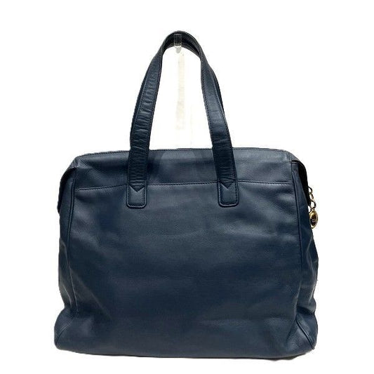 Dior Logo Charm Navy Leather Bag Handbag Ladies