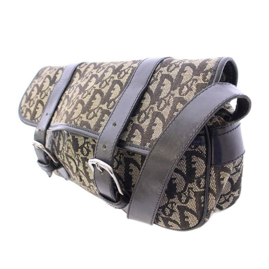Christian DIOR Trotter Canvas Shoulder Bag Leather Switch Logo Bicolor Black