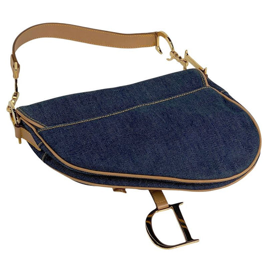 Christian Dior Saddle Bag Handbag One Shoulder Logo Shoulder Bag Denim Navy