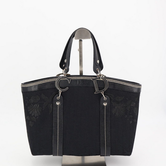 Christian DIOR Trotter Flower Embroidered Tote Handbag