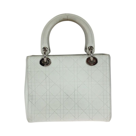DIOR Cannage Studded Lady Dior Medium White Leather Handbag Tote Bag Women