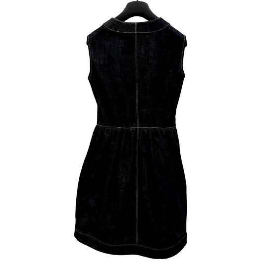 Christian Dior Denim Dress Blue Embroidery Zipper Zip-Up Sleeveless 34