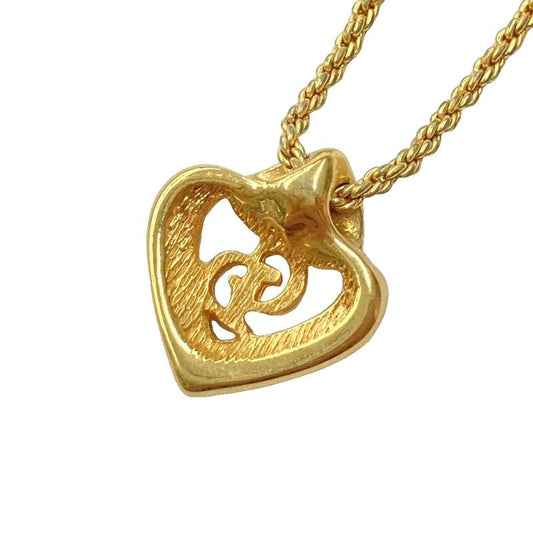 Christian DIOR Heart Motif CD Logo Necklace Pendant Accessory Gold Color - GY47