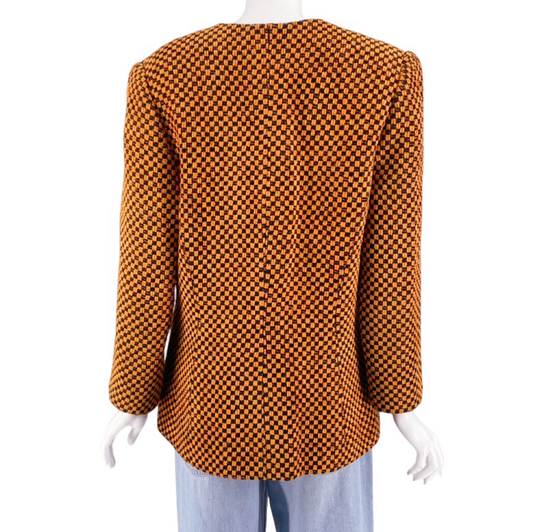 Christian DIOR Jacket Wool Blend Gold Buttons Checkered 80s CD Logo Orange