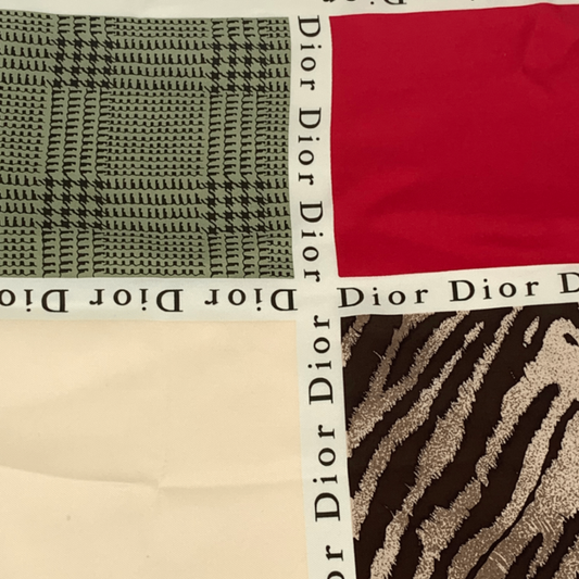 Christian DIOR Coco Mark Scarf Silk Beige And Red