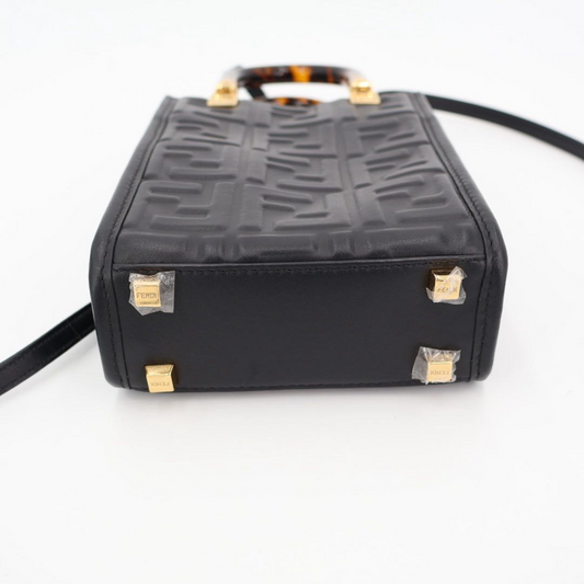 Fendi Zucca Sunshine Shopper Small Leather 2WAY Handbag Black