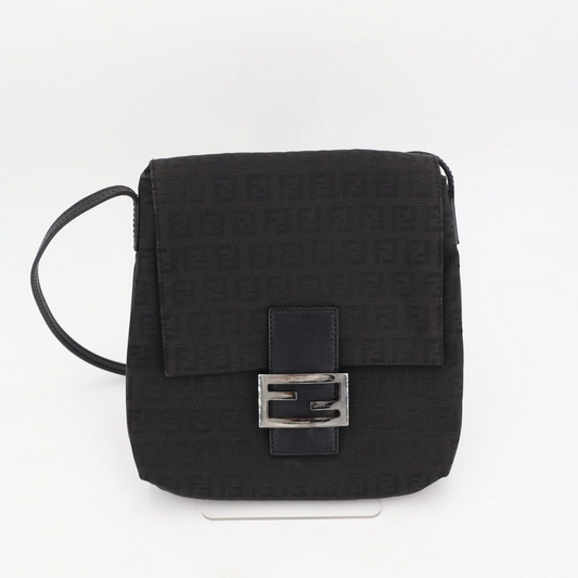Fendi Chef Bag Zucca Pattern Current Model One Shoulder Black Canvas