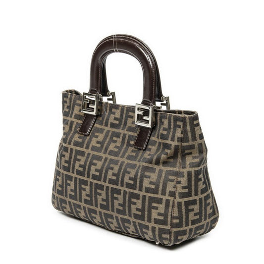 Fendi Handbag Zucca Nylon Canvas Brown Silver Hardware Women