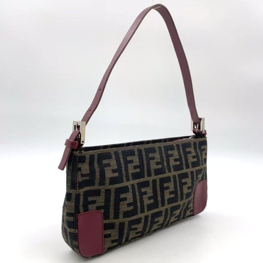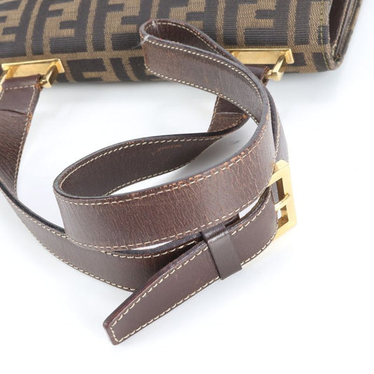 Fendi Zucca Canvas Leather Shoulder Bag Shoulder Hand Genuine Leather Brown