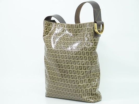 Authentic Fendi Zucchino Shoulder Bag Tote Bag PVC Brown Zucchino Bag Pre-owned