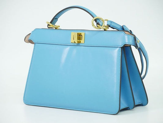 Authentic Fendi Peekaboo Icyou East West 2WAY Shoulder Bag Handbag Leather Blue