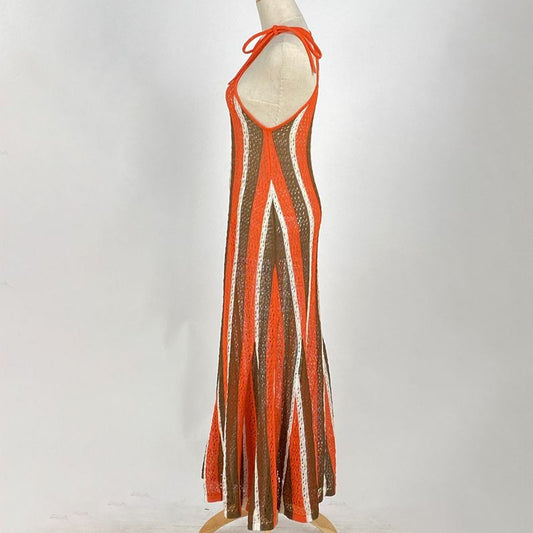 Fendi Camisole Knit Dress Mesh Flared Layered Dress Skirt Cotton Nylon Orange