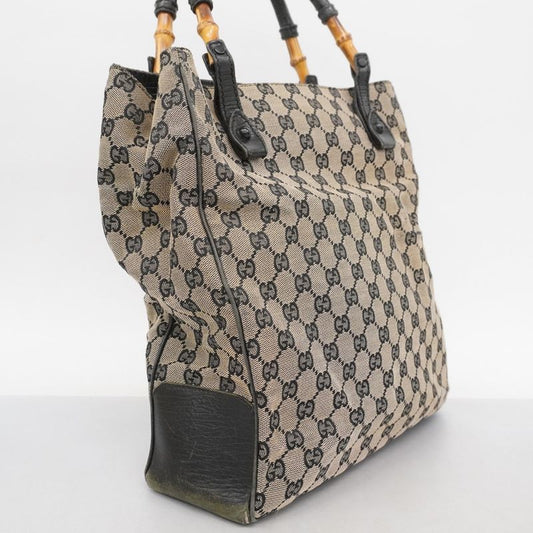Gucci Tote Bag GG Canvas Bamboo 112530 Canvas Black Beige Silver Hardware Women