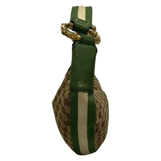 Gucci Shoulder Bag GG Patternbamboo 131036 Beige Dark Brown And Green Leather