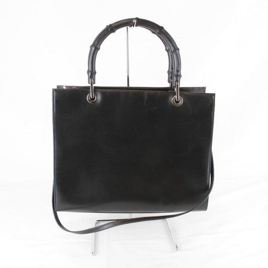 Gucci 001 1998 Handbag Bamboo 2WAY Leather Gold Hardware Black Ladies Formal