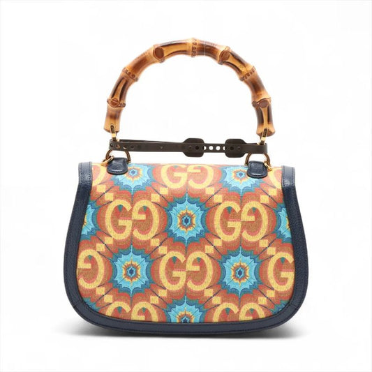 Gucci Handbag Bamboo 323660 Leather Blue Chien Pan Gold Hardware 2way Bag Ladies