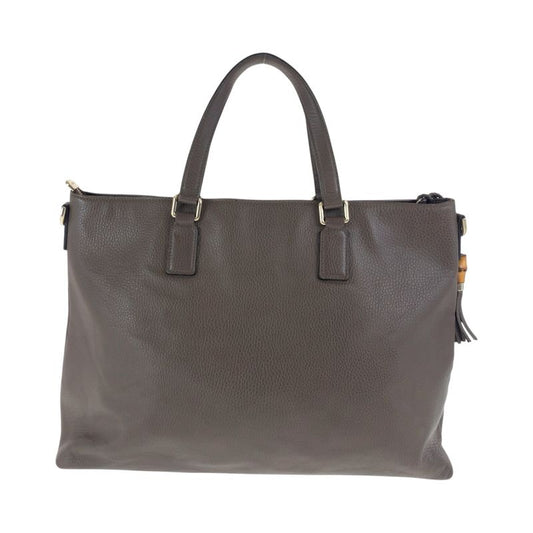 Gucci Bamboo Gray Silver Hardware Leather 354665 Tote Bag Shoulder Bag Women