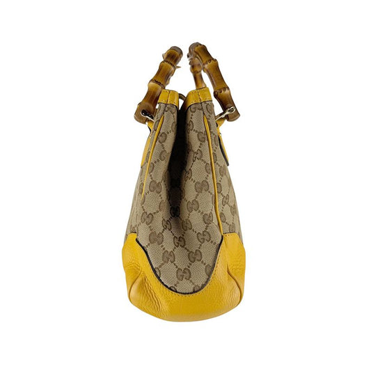 Gucci GG Canvas Bamboo Leather Tote Bag Shoulder 111713 Gold Hardware Beige