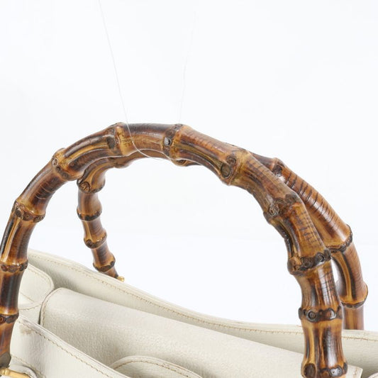 Gucci Bamboo White 002 2865 Leather Handbag Tote Genuine Leather Brand A4