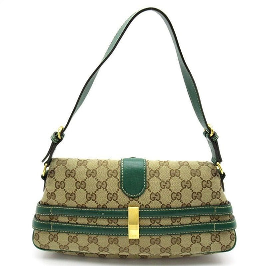 GUCCI Vintage GG Canvas Horsebit Shoulder Bag Green