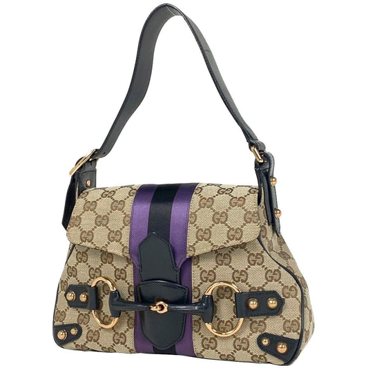 GUCCI Vintage GG Canvas Horsebit Shoulder Bag