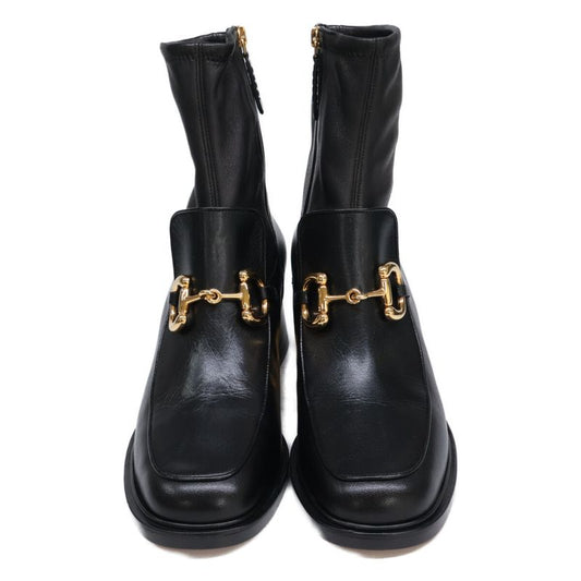 Gucci Boots Short Boots Shoes Leather Black Gold Horsebit Bee Embroidery