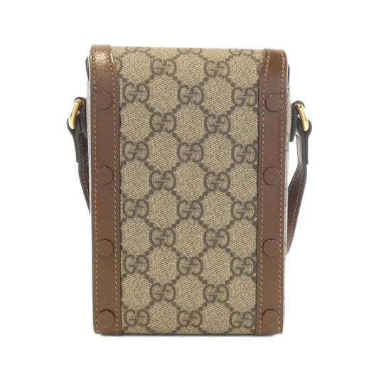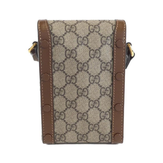 Gucci Shoulder Bag GG Supreme Horsebit 625615 PVC Leather Brown White Gold