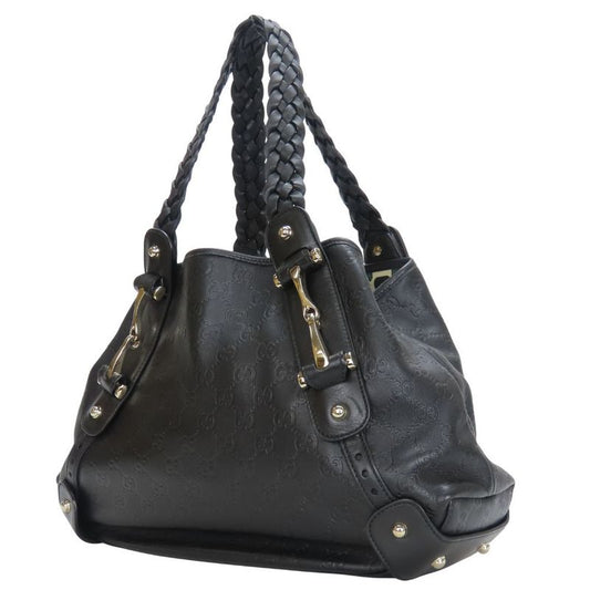Gucci Tote Bag Guccissima 162900 Horsebit Striped Leather Black Shoulder Usual