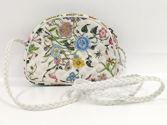 Gucci Flora Mini Shoulder Bag Horsebit Canvas Leather White Multicolor 534951
