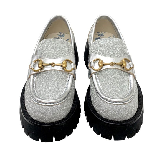 Gucci Loafer Leather Shoes Leather Silver Gold Lame Horsebit Bee