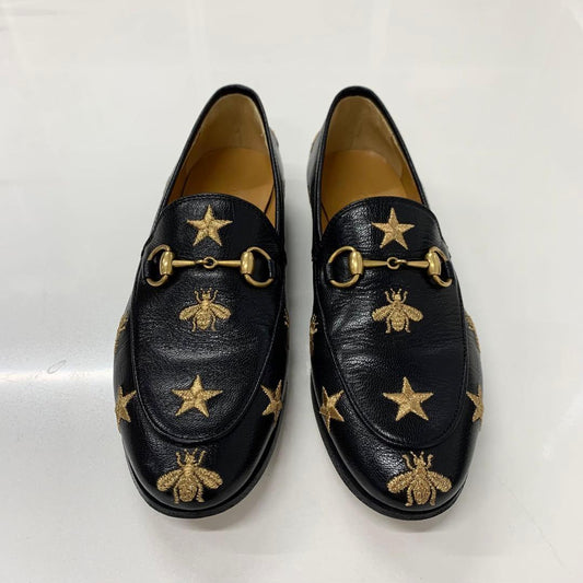 Gucci Loafers Leather Shoes Flat Shoes Horsebit Bee Star Embroidery Leather