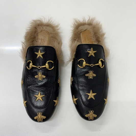 Gucci Princetown Horsebit Star Bee Leather Fur Mules