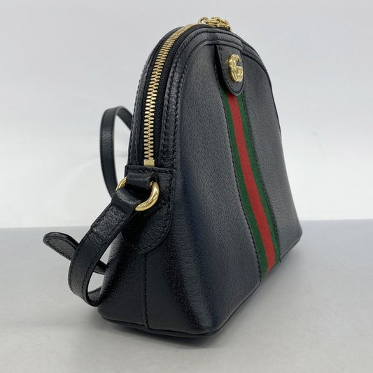 Gucci Shoulder Bag Sherry Line GG Marmont 499621 Leather Black Gold Hardware