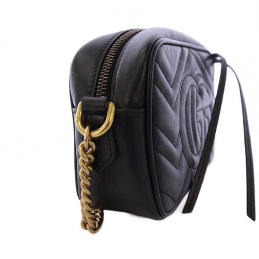 Gucci Ggmarmont Shoulder Bag Pochette Chain Bag Crossbody Quilted Leather Black