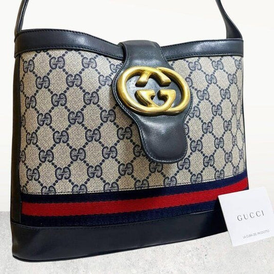 Gucci GG Supreme Web Canvas Sherry Messenger Bag Monogram Flap Tote
