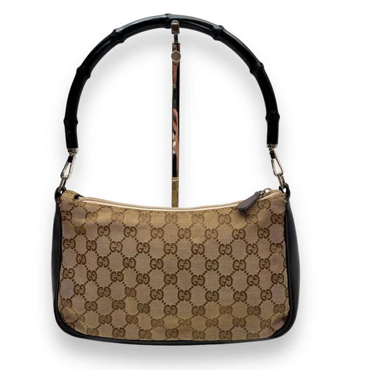 Gucci GG Sherry Bamboo Pochette Baguette Shoulder Bag Purse Tote