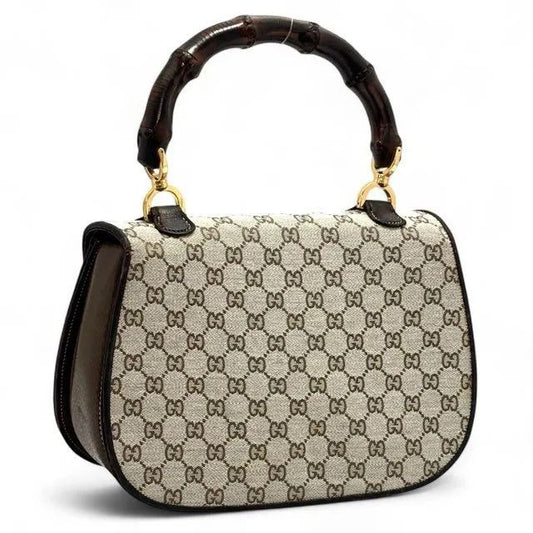 Gucci GG Bamboo 1947 Vintage Sherry Bag Purse Tan Brown Leather Handle