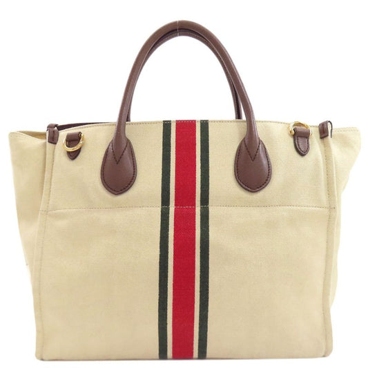 Gucci 657422 Sherry Line For Double Tote 2WAY Handbag Canvas Women
