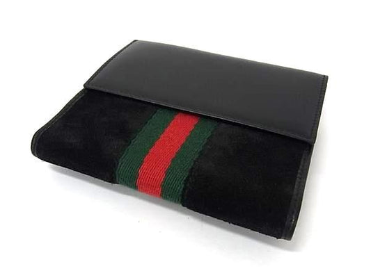Gucci 05474 2778 Jackie Sherry Line Suede And Leather Fold Wallet Black Fr4261