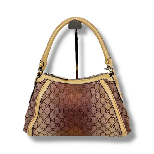 Gucci One Shoulder Bag GG Canvas Brown Leather Hobo Soho